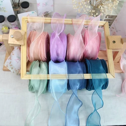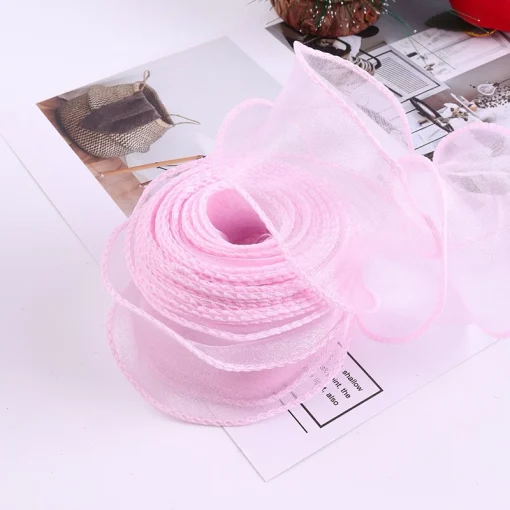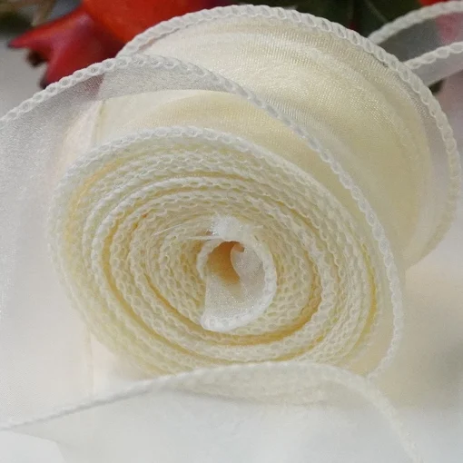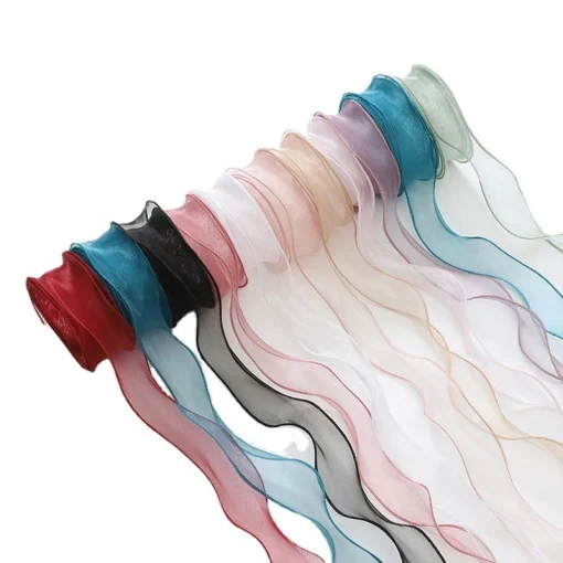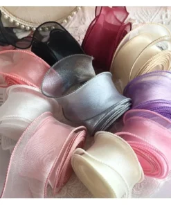 – Ruy Băng Voan 4cm, Cuộn Ruy Băng Kim Tuyến, Dây Duy Băng Lụa Ren Viền Xoắn Vải Gói Hoa.