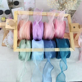 Ruy băng voan 4cm, cuộn ruy băng kim tuyến, dây ruy băng lụa ren viền xoắn vải gói hoa